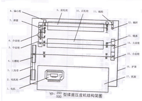 (3)機器工作時(shí),軋制的面團可沿進(jìn)面盤(pán)滑下,必要時(shí)可用手給以輔助下滑力的作用,但嚴禁將手伸入軋輥內,以免發(fā)生危險。
