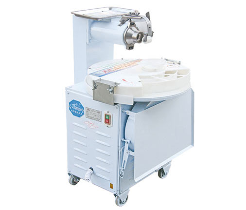 2、接通電源,檢查絞龍轉向以螺旋向前推進(jìn)為正確。使用時(shí)將面團連續放入絞龍體,切刀可自行切下定量面團落入成型盤(pán),成型后饅頭自動(dòng)拋出。生產(chǎn)作業(yè)時(shí),操作者站在入面料口一側,以免被刀劃傷,投面時(shí)切勿用硬物擠壓,防止零件異常損壞,使用時(shí)灑在吊輪上少量面粉,避免粘結。
