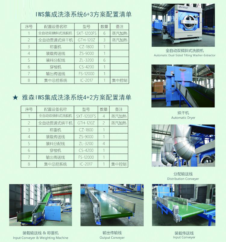 一、集成設備為高端5星級大酒店,大型水洗廠(chǎng),大型三甲醫院和洗滌質(zhì)量要求很高,又需要高速、高效、節能、省時(shí)、省人工大規模洗滌的高端客戶(hù)專(zhuān)業(yè)設計制造。具有快速自動(dòng)進(jìn)料與自動(dòng)快速傾斜出料功能。